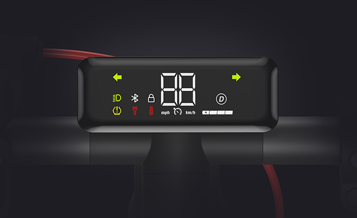 Лесно наблюдавайте вашата скорост, ниво на батерията и други, всичко удобно показано за незабавно справка. Ъгълът на наклона на екрана от 14° е внимателно проектиран за ясна видимост дори по време на външни карания.